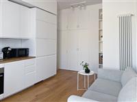 L'appartamento, posto al 2° piano senza ascensore, è caratterizzato da: ampia zona giorno con cucina a vista, bagno completo con box doccia, spaziosa camera matrimoniale con ampi armadi; è inoltre completo di tutti gli elettrodomestici (lavastoviglie, forno, frigorifero con freezer, lavatrice, aspirapolvere, ferro da stiro, televisore) e aria condizionata.